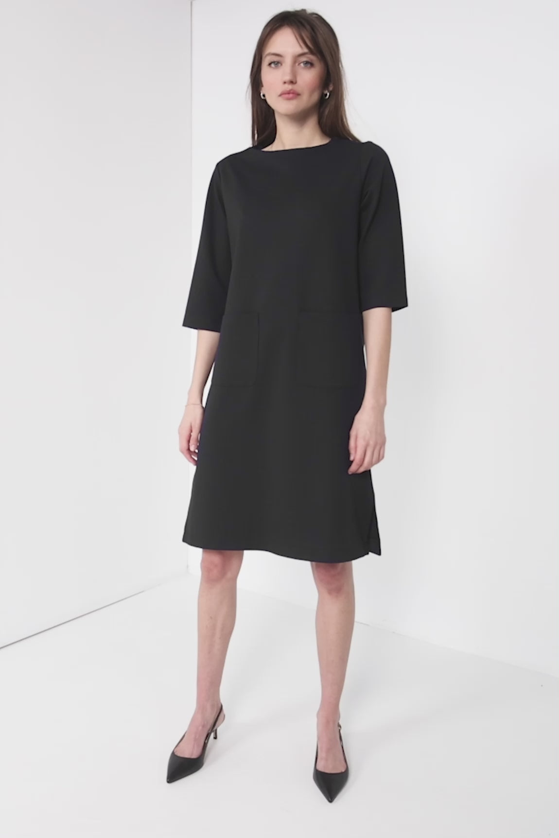 Drukke (werk-) dag voor de boeg die wel eens flink uit zou kunnen lopen? Dan is comfort je beste vriendin. De stijlvolle Polly Dress is gemaakt van stretchy Punto-jersey met een fraaie, wat zwaardere valling. Met het minimalistische ontwerp met rechte snit, slanke mouwen tot de elleboog en opgestikte voorzakken kom je even elegant als trendy voor de dag. Een Smart Comfort Essential als geen ander! Verkrijgbaar in Navy & Black.