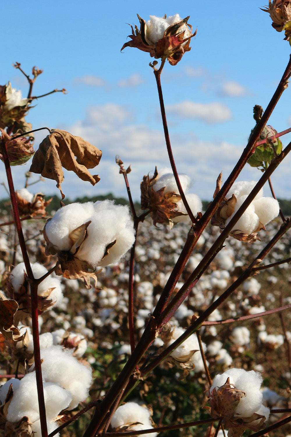 Katoen is het zaadpluis van de katoenplant, een plant die wordt geteeld in warmere klimaatzones. De geoogste zaadbollen worden gekamd en gereinigd, de vezels worden op lengte gesorteerd waarbij de langste, zachtste vezels gebruikt worden om garens te spinnen – soms in zuivere vorm, soms vermengd met andere vezels in een blend. De garens worden uiteindelijk geweven of gebreid, afhankelijk van de toepassing: huishoudtextiel, beddengoed en last but not least: kleding. Katoenen blouses, katoenen broeken, katoenen jurken, katoenen T-shirts, katoenen truien: we kunnen er geen genoeg van krijgen.