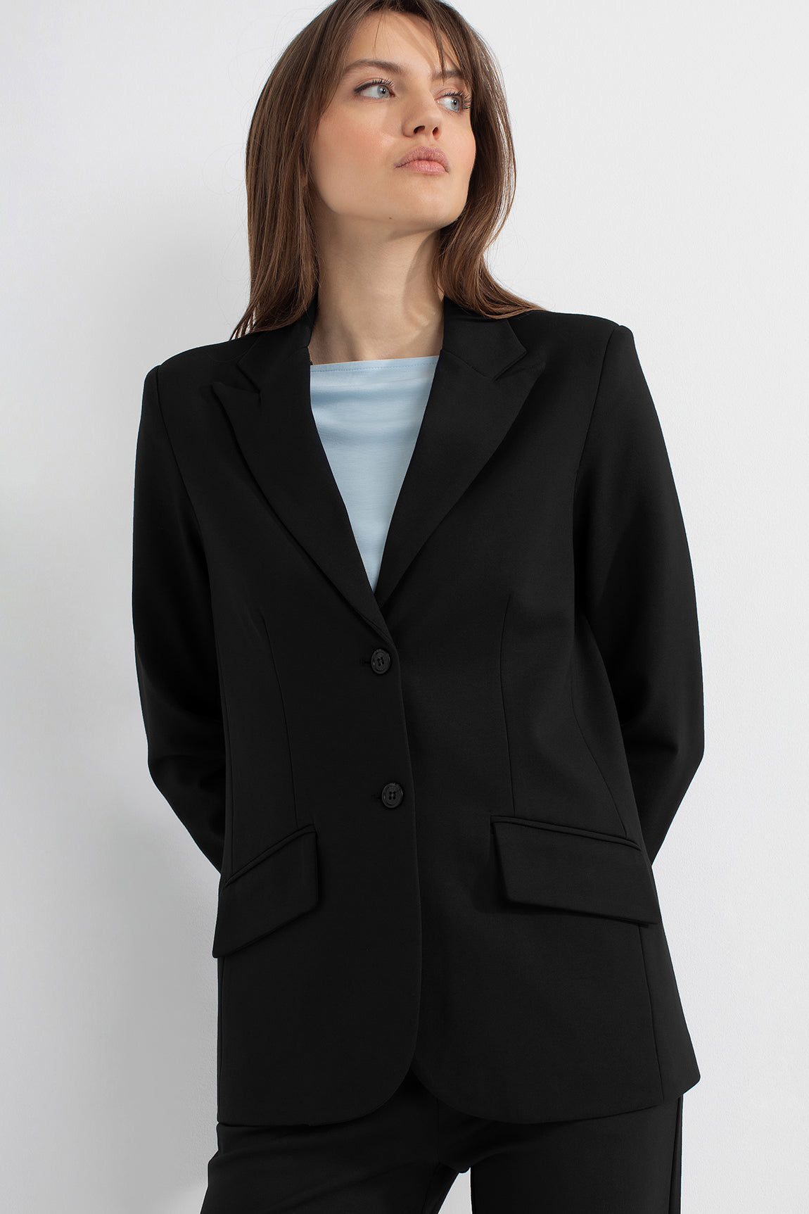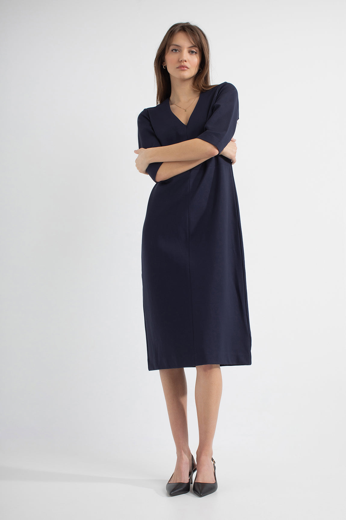 Specially selected as a luxurious, more sustainable, and more natural alternative to the popular travel jersey, the comfortable stretch quality consists mainly of soft viscose - a man-made textile fiber made from natural cellulose pulp. As a 'double knit', the high-quality Punto jersey has a fuller handfeel with a flattering smoothing effect. Sparingly added polyamide reduces wrinkle susceptibility and extends the lifespan, elastane makes the fabric comfortably stretchy and shape-retaining. Made to last, designed for easy living.